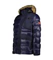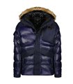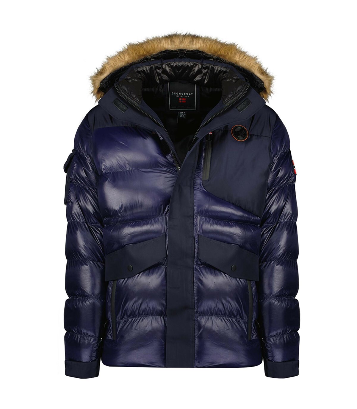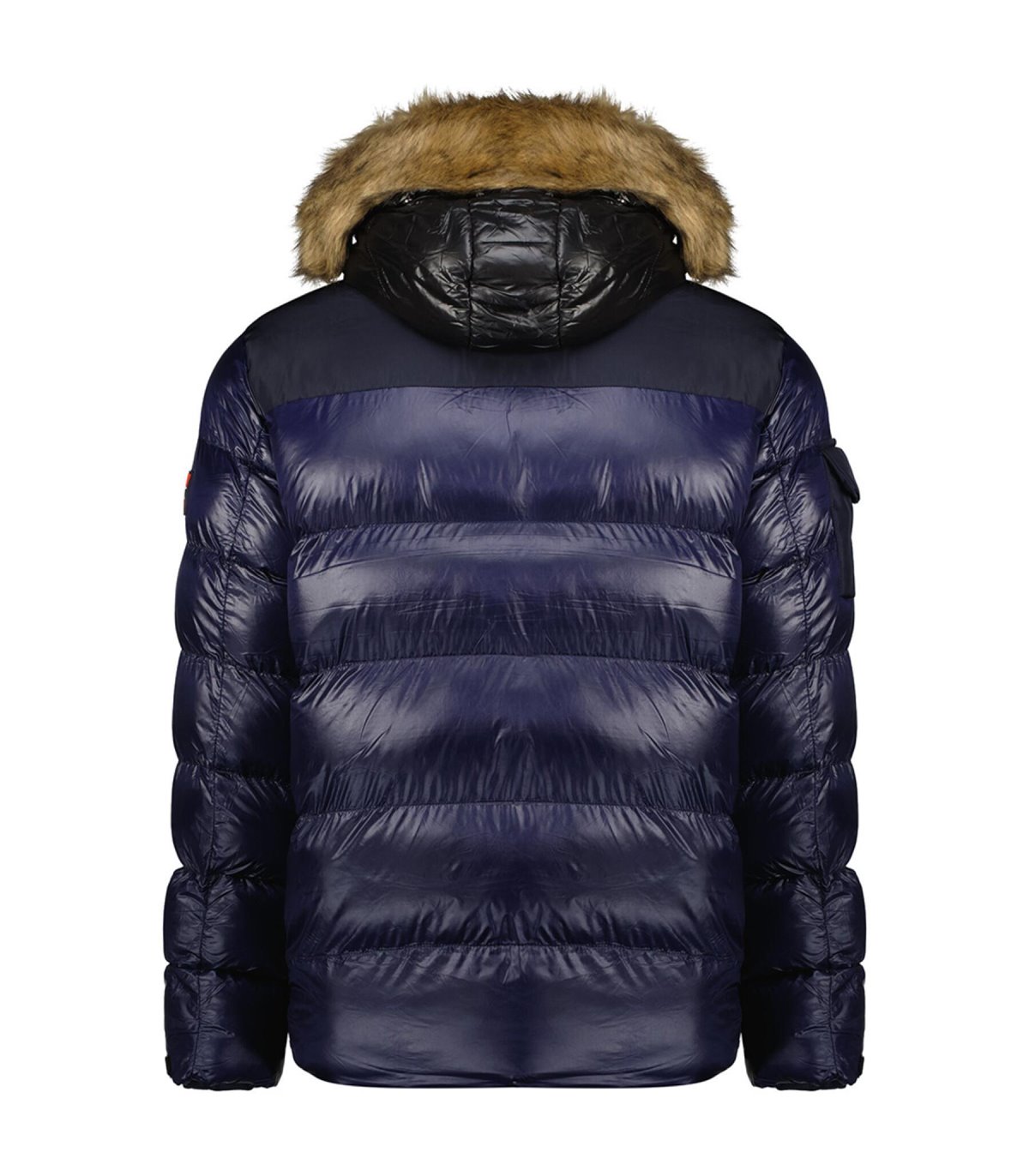 Chaqueta con capucha y pelo sintético desmontable. Bolsillos laterales.