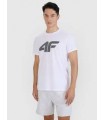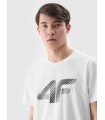 La camiseta 4F para hombre está confeccionada en 100 % algodón , lo que la hace suave, duradera y cómoda. El cuello redondo está ligeramente acanalado. Estampado "4F" visible en la parte delantera.
