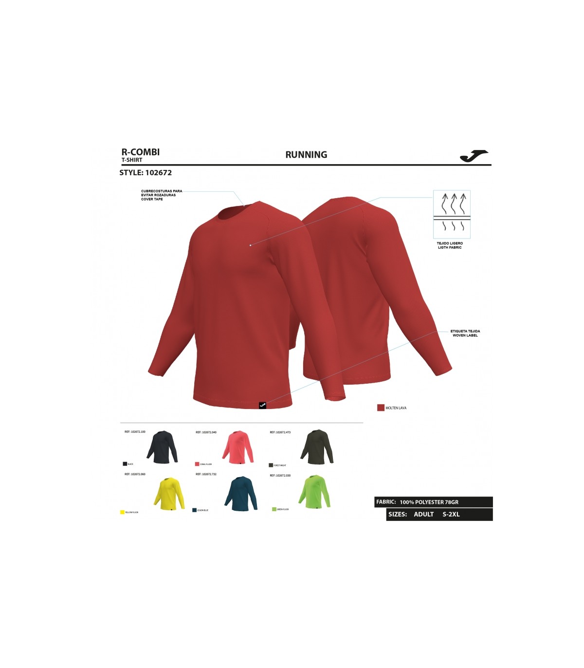 Camiseta de manga larga tipo raglán confeccionada en tejido mesh muy traspirable y ligero para aportar el máximo confort al deportista. Incluye logo en tape en el bajo.