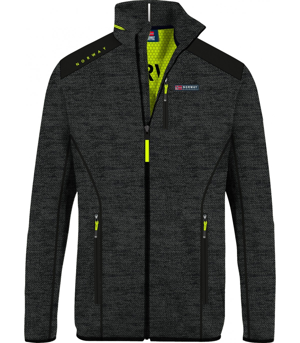 Esta chaqueta Norway con cremallera completa para hombre está diseñada para quienes buscan comodidad y estilo en cada detalle. Confeccionada con un tejido de doble capa con efecto lana, ofrece una agradable sensación cálida y envolvente: el exterior de imitación lana crea un look informal a la vez que refinado, mientras que el interior de forro polar garantiza suavidad y aislamiento térmico. El diseño se realza con inserciones en contraste, bolsillos laterales y un práctico bolsillo con cremallera en el pecho. La capucha, integrada en el cuello, le aporta un toque deportivo y funcional. Ideal para el tiempo libre o para días activos al aire libre.
