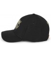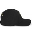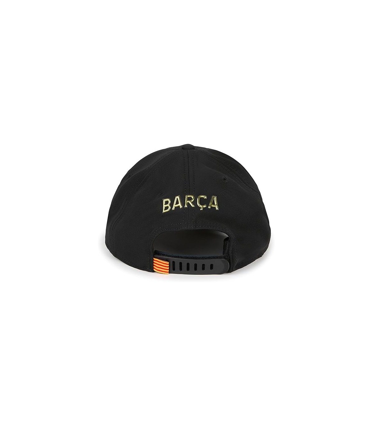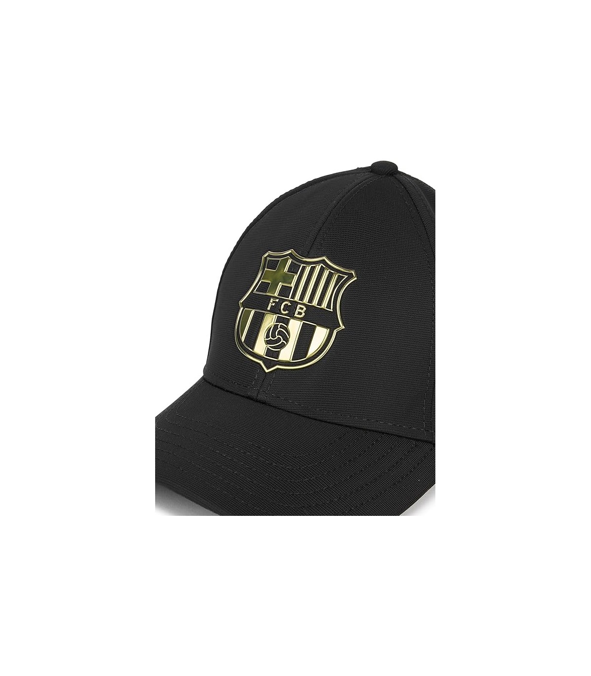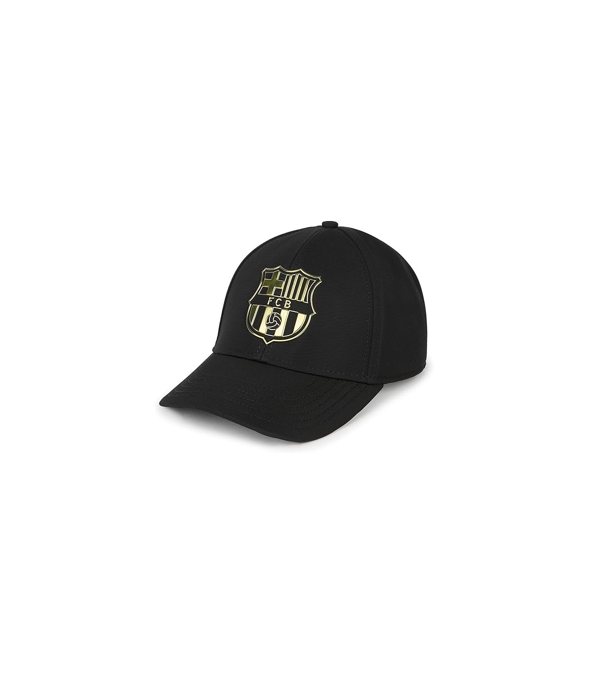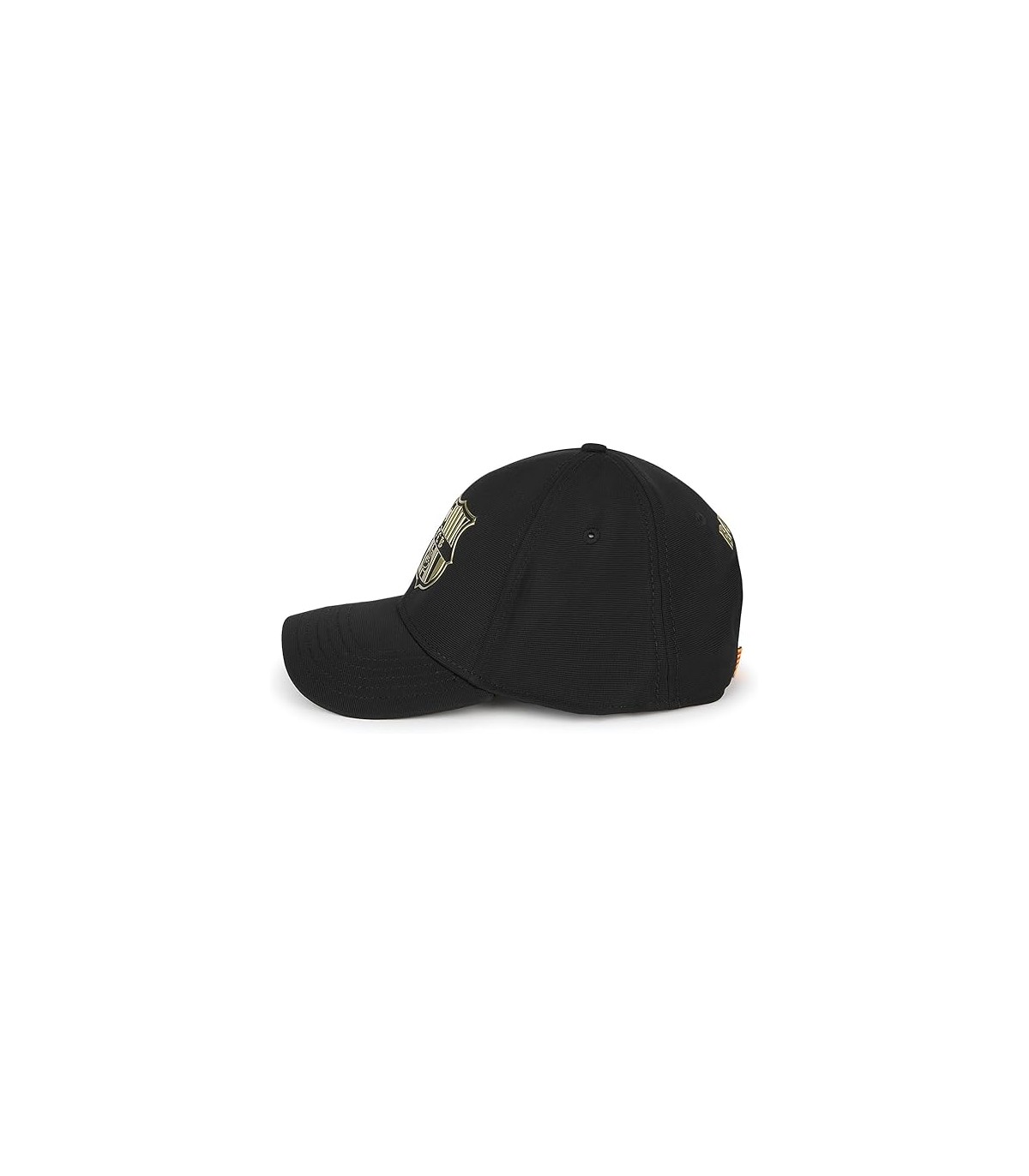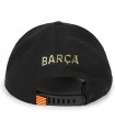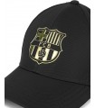 Gorra FC Barcelona el escudo oro en relieve sobre un fondo negro.