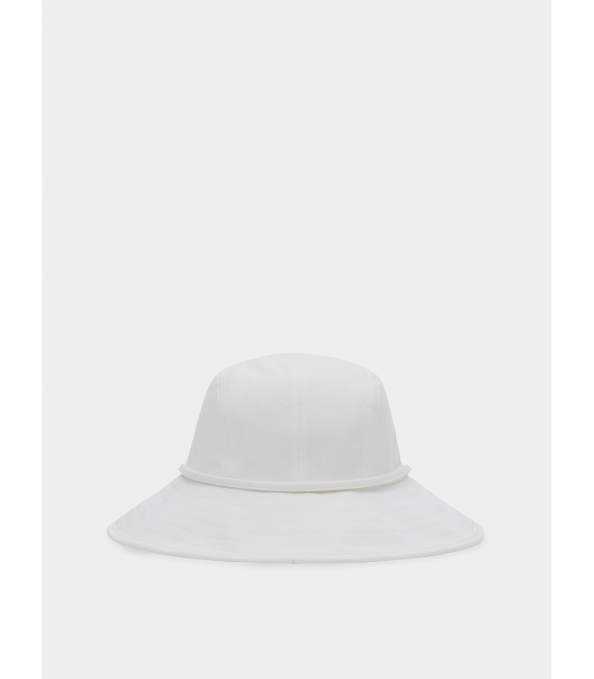 El Sunny Side Panama presenta un ala ancha con dobladillo estampado, correa para la barbilla y etiqueta tejida.
