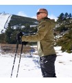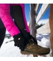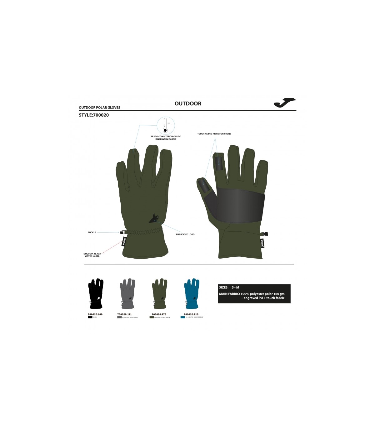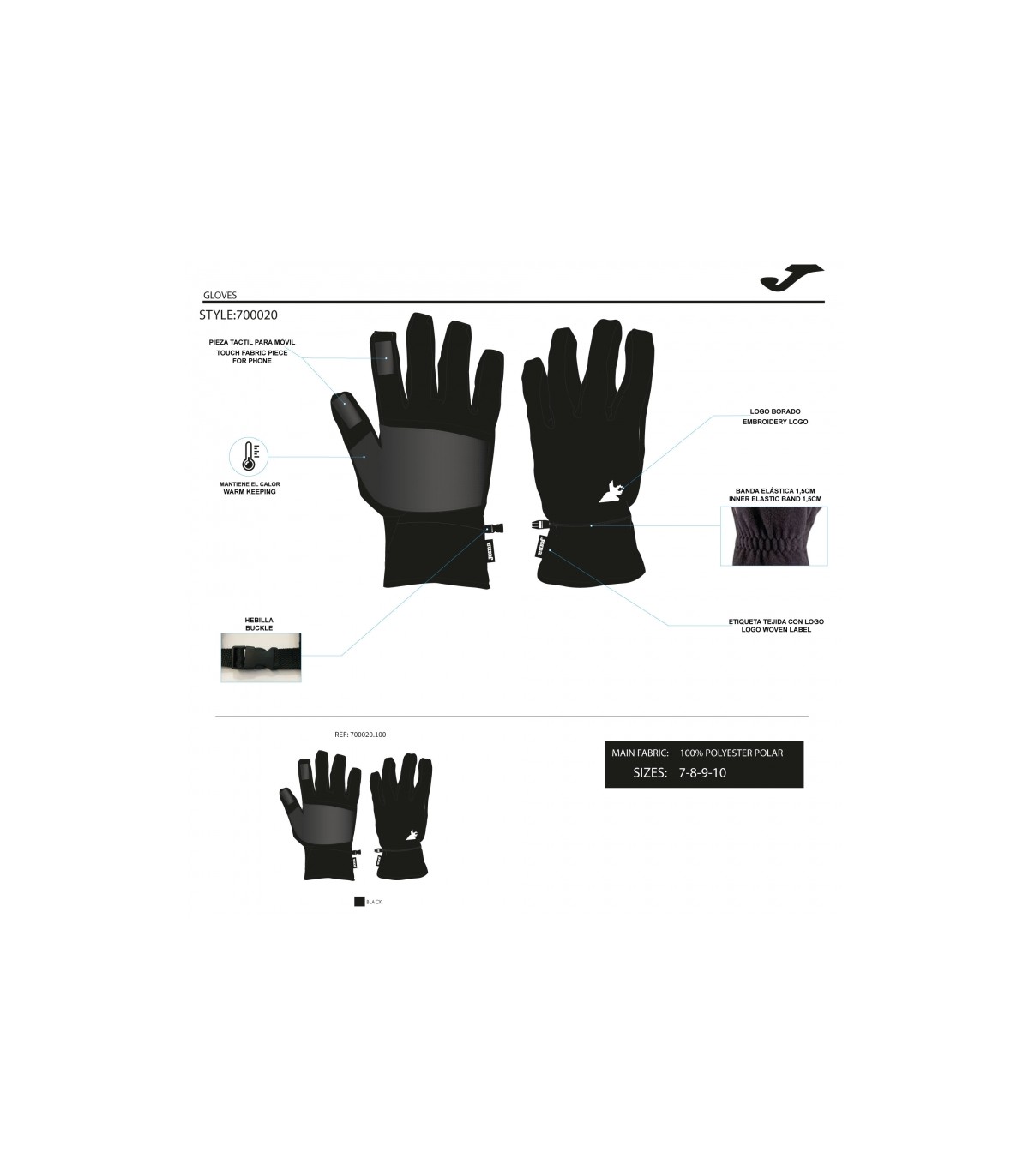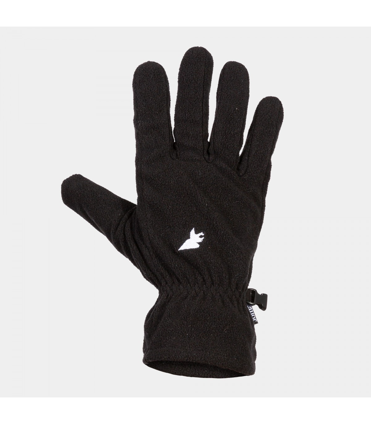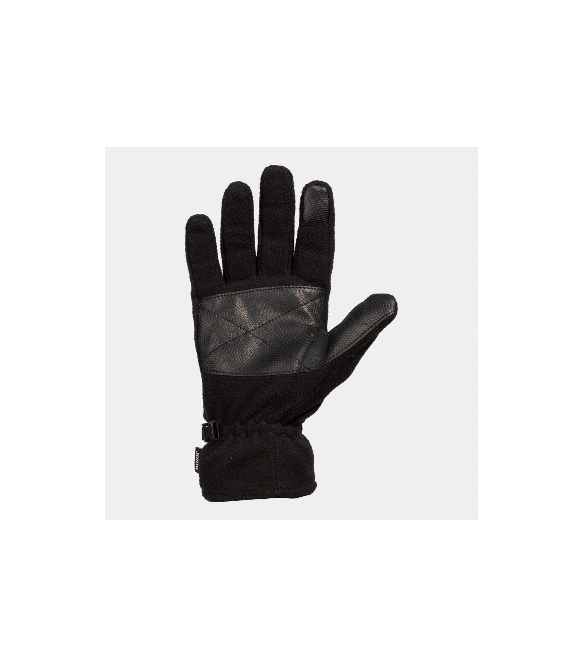 Guantes confeccionados en tejido resistente y confortable. Incorpora tejido fleece en el interior para mantener la temperatura corporal y aportar suavidad. Incluye pieza táctil en los dedos pulgar e índice para permitir el uso del móvil, y en la palma de la mano cuenta con una pieza específica para preservar el calor. Para mantener el ajuste cuenta con una banda elástica en la muñeca con hebilla.