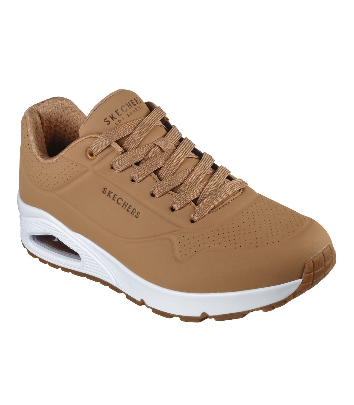 La comodidad clásica con cámara de aire se encuentra con una nueva actualización en la Skechers Street™ Street Uno - Stand on Air. Moderna zapatilla con cordones con parte superior de piel sintética lisa y perforada, una plantilla SKECHERS Air Cooled Memory Foam® y media suela con cámara de aire visible Skech-Air®.