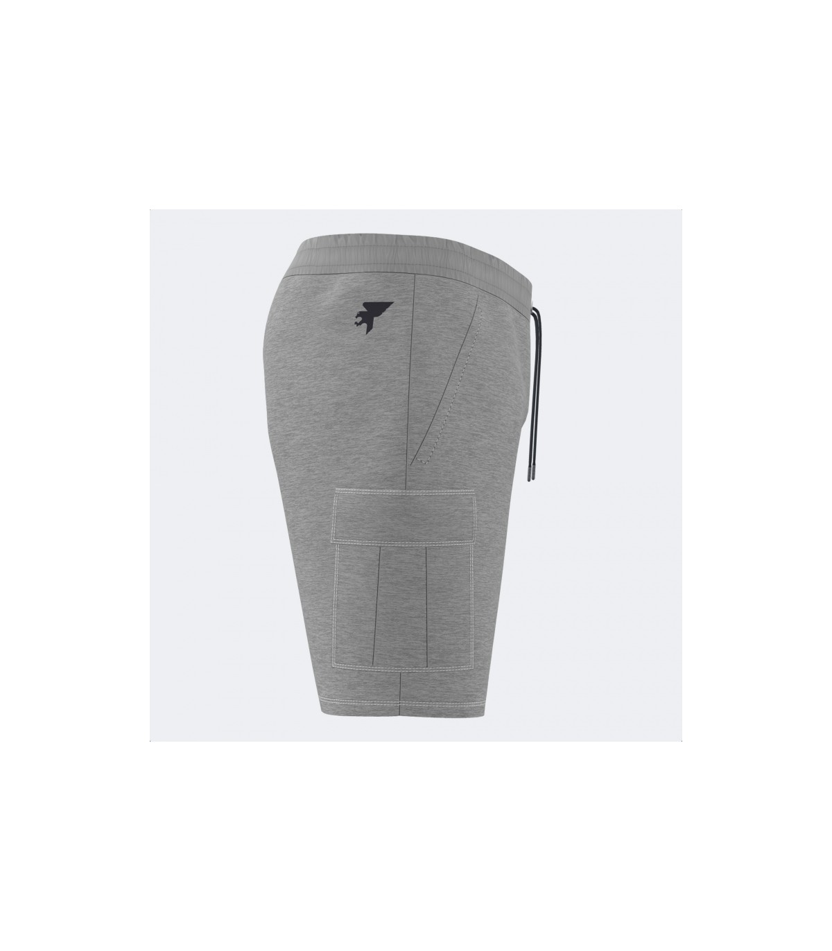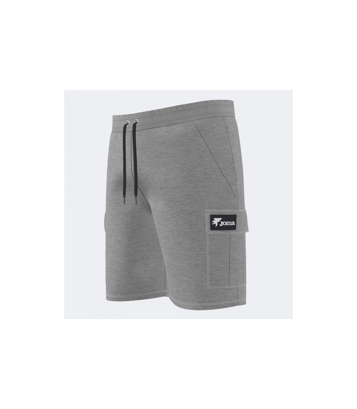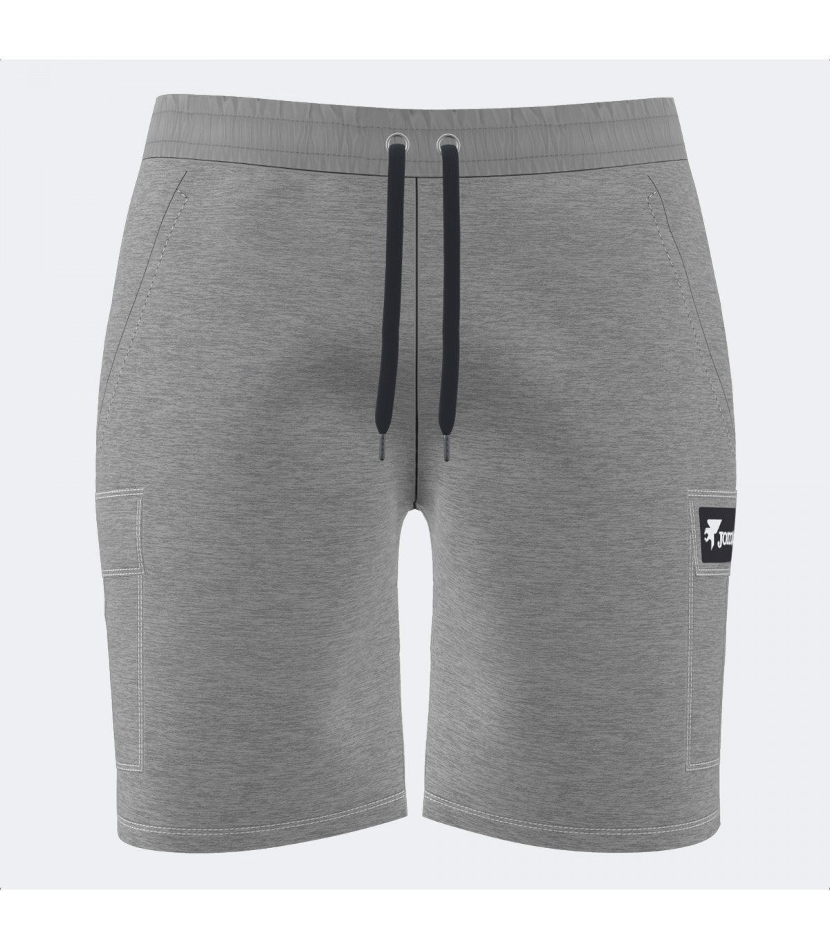 Bermuda con bolsillos y cintura elástica ajustable con cordón. Incluye bolsillos laterales tipo cargo y tape holográfico sobre uno de los bolsillos.