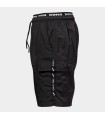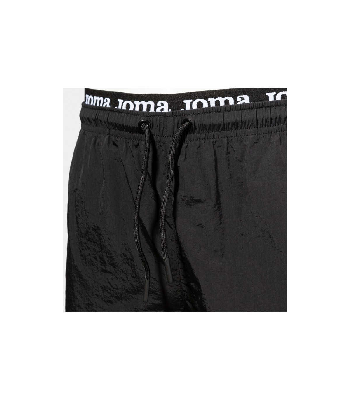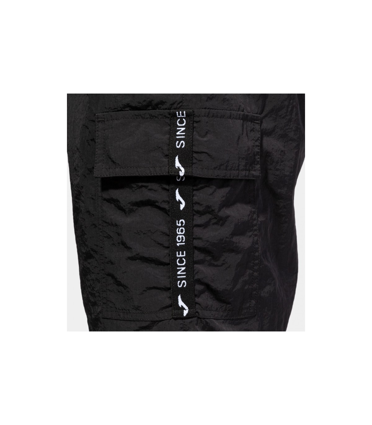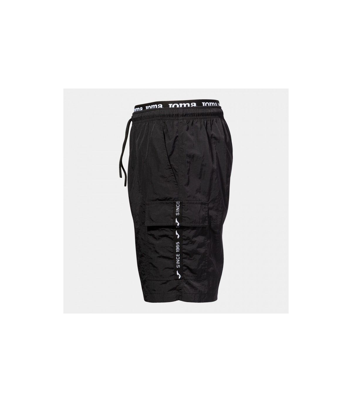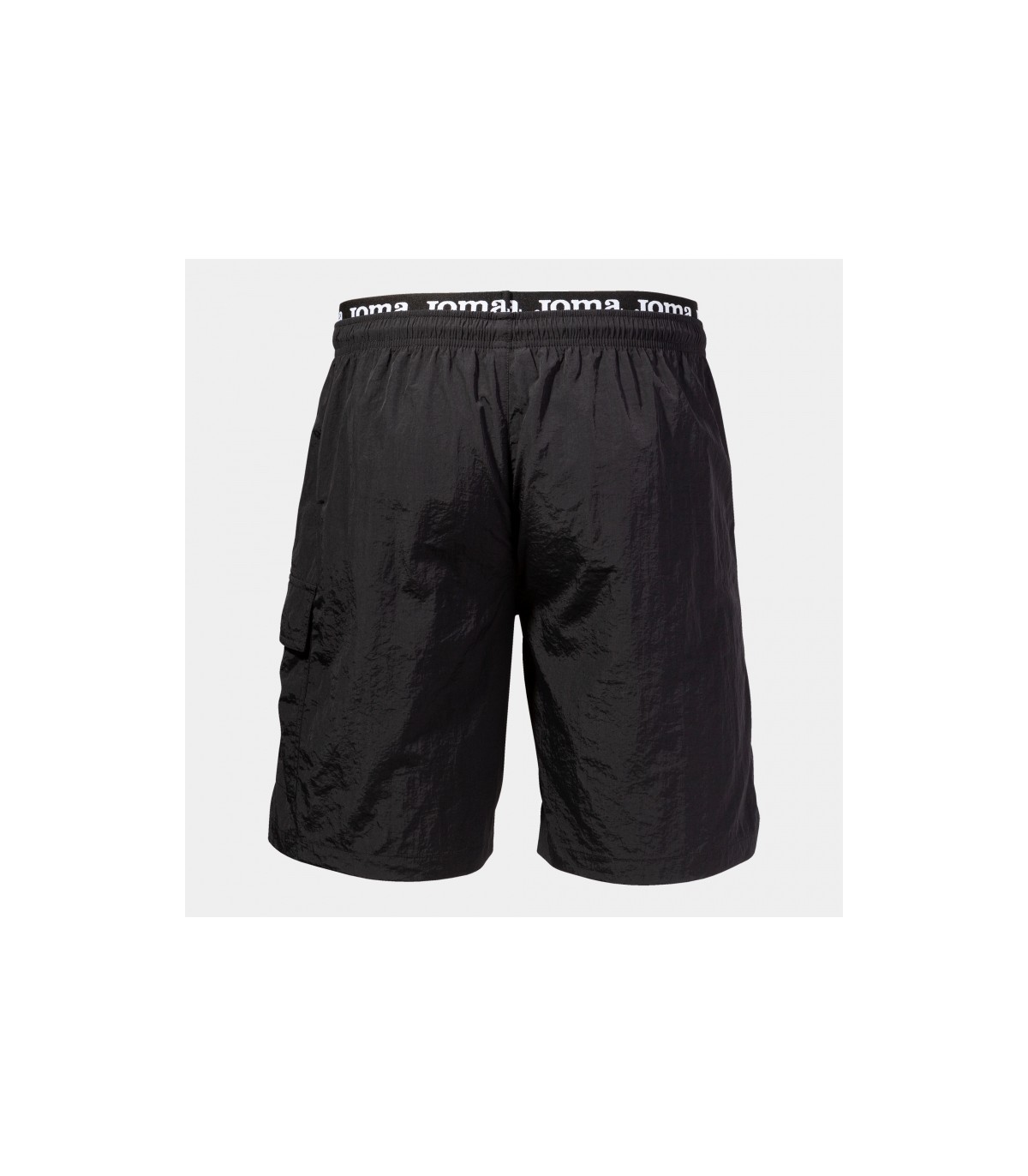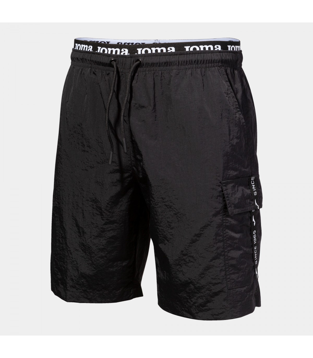 Bermuda con bolsillos y cintura elástica ajustable con cordón. Incluye un bolsillo tipo cargo en el lateral y una banda elástica en la cintura con el logo Joma.
