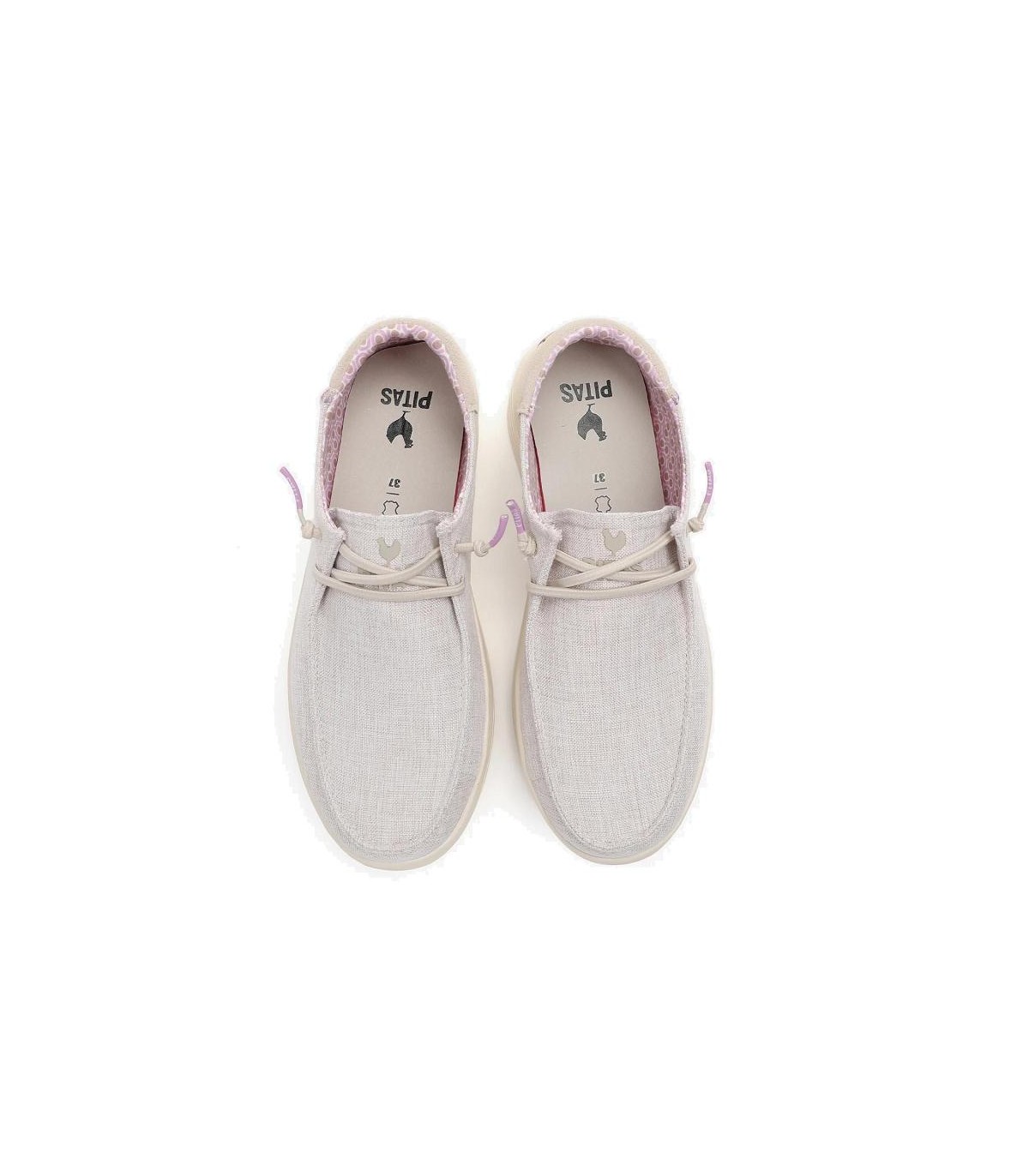 Wallabi en corte de textil jaspeado con detalles bordados y trasera de serraje. Su plantilla interior de EVA y PIEL extra gruesa y extraíble, los hace además, especialmente cómodos.