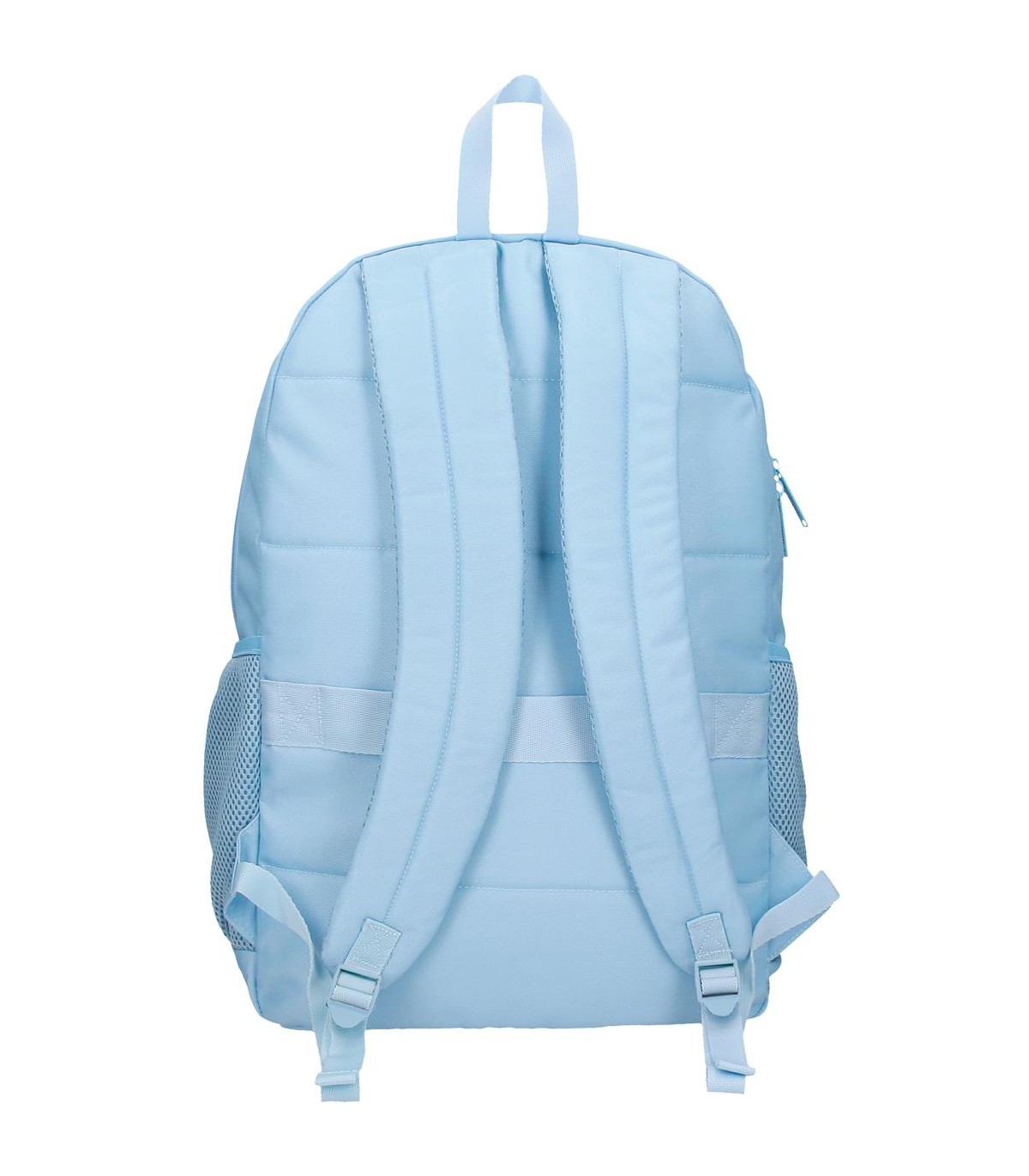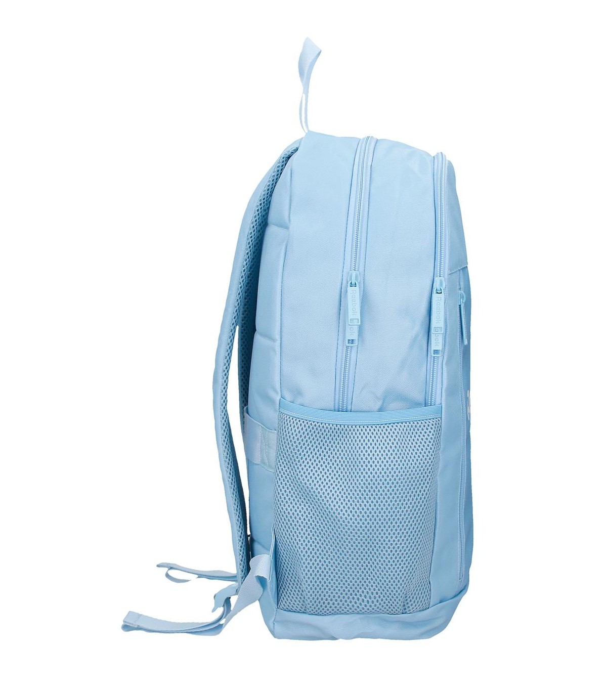 - Mochila de 31,5 cm x 45 cm x 15 cm fabricada en Poliéster.