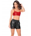 Short en tela metalizada con short interno e insertos en malla semi transparente y bolsillos funcionales.