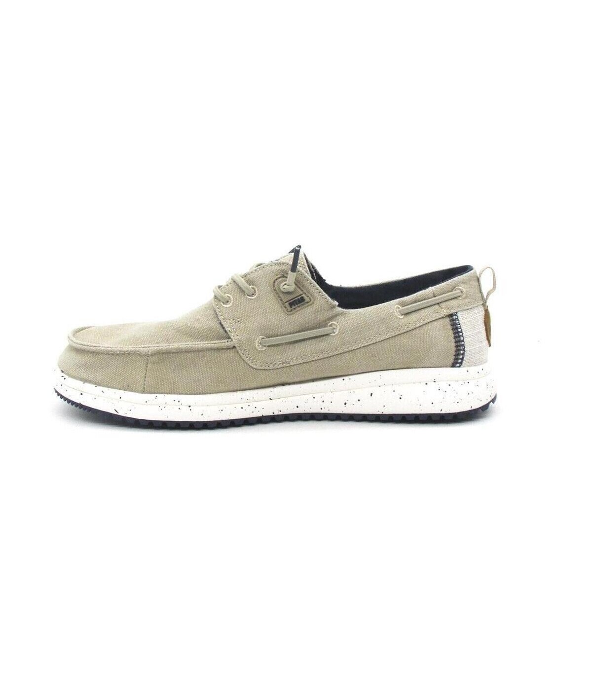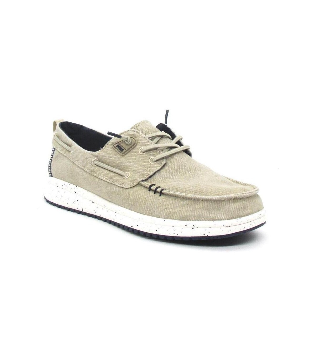 El naútico BYRON, de líneas actuales y novedosas, tiene mucha personalidad. La parte superior es de lona de algodón, transpirable y resistente e incluye cordones elásticos, que no hace falta atar. Su suela en EVA con patín de goma garantiza su agarre y su plantilla interior extraíble le da un extra de amortiguación que lo hace especialmente cómodo.