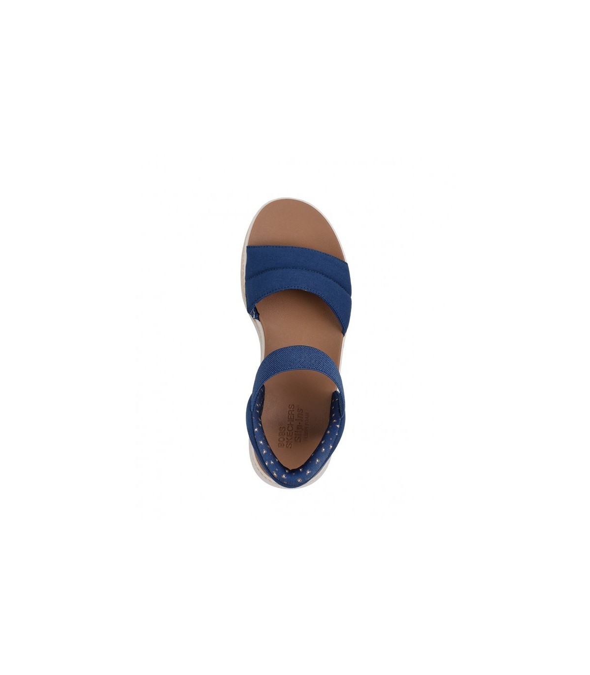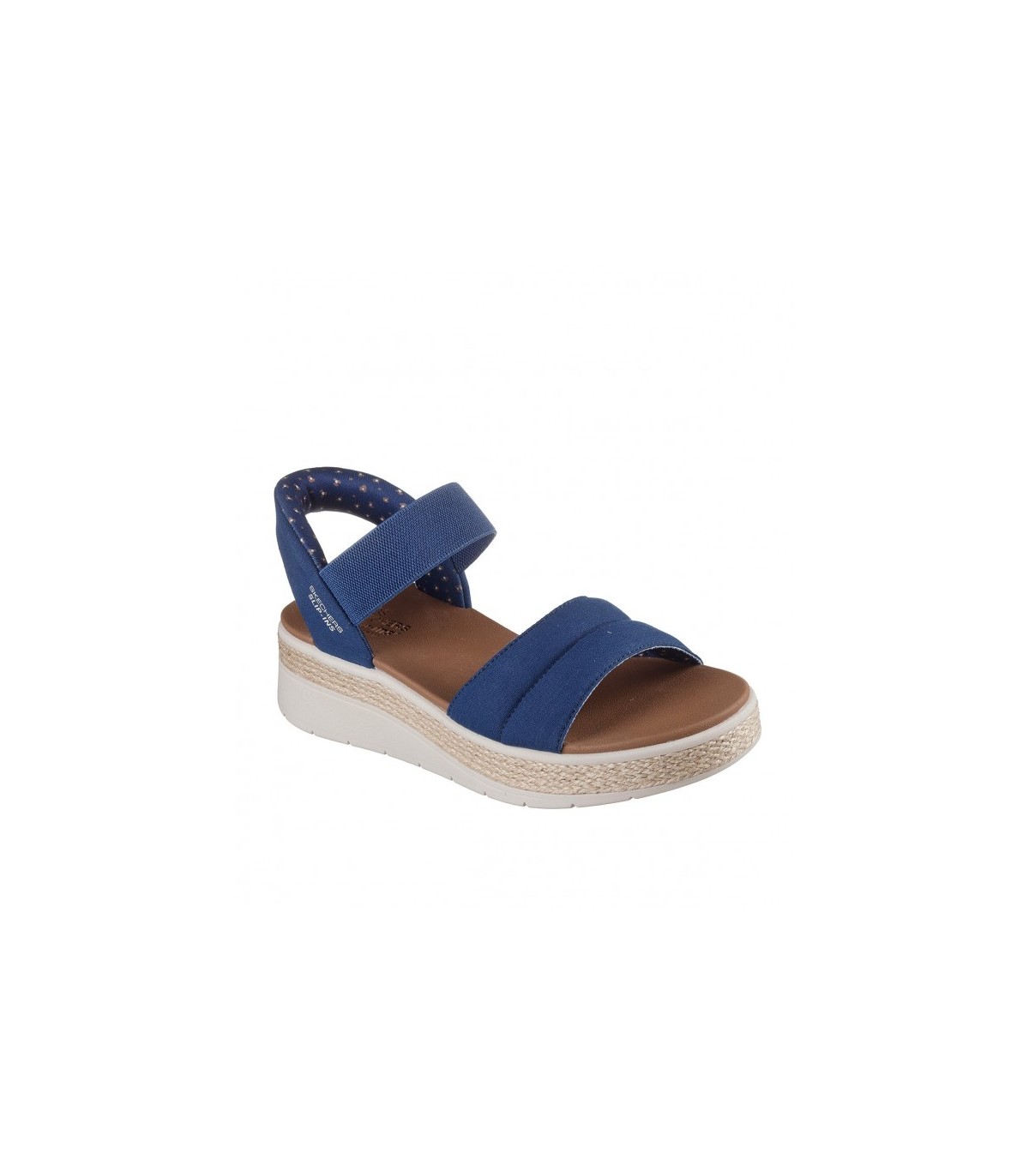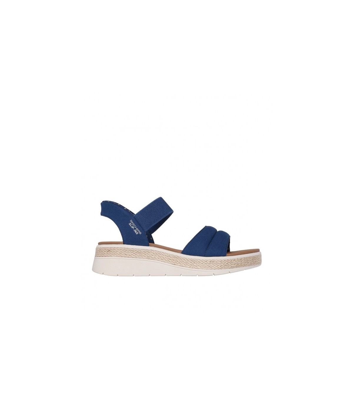 Diseñadas con nuestra exclusiva Heel Pillow™, estas sandalias sin cordones presentan una parte superior de lona acolchada con una tira de refuerzo en el empeine, ribete de yute en la entresuela, talón trasero Skechers Hands Free Slip-ins® y una plantilla acolchada y cómoda Skechers Plush Foam®. BOBS® de Skechers®.