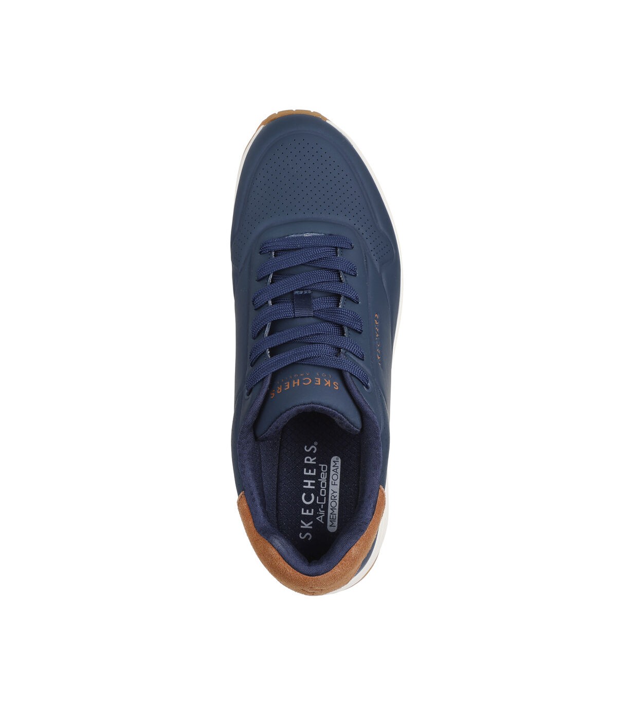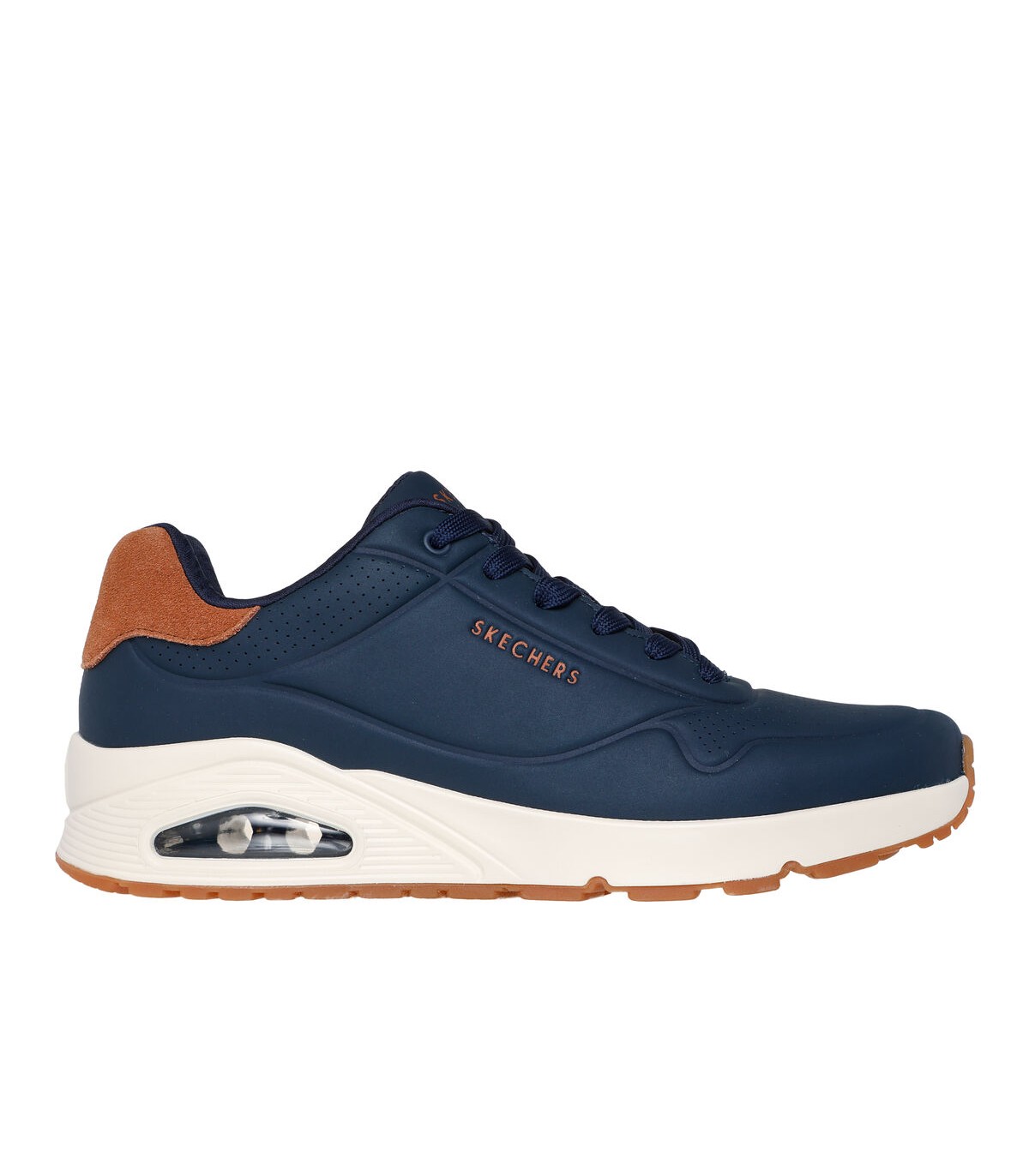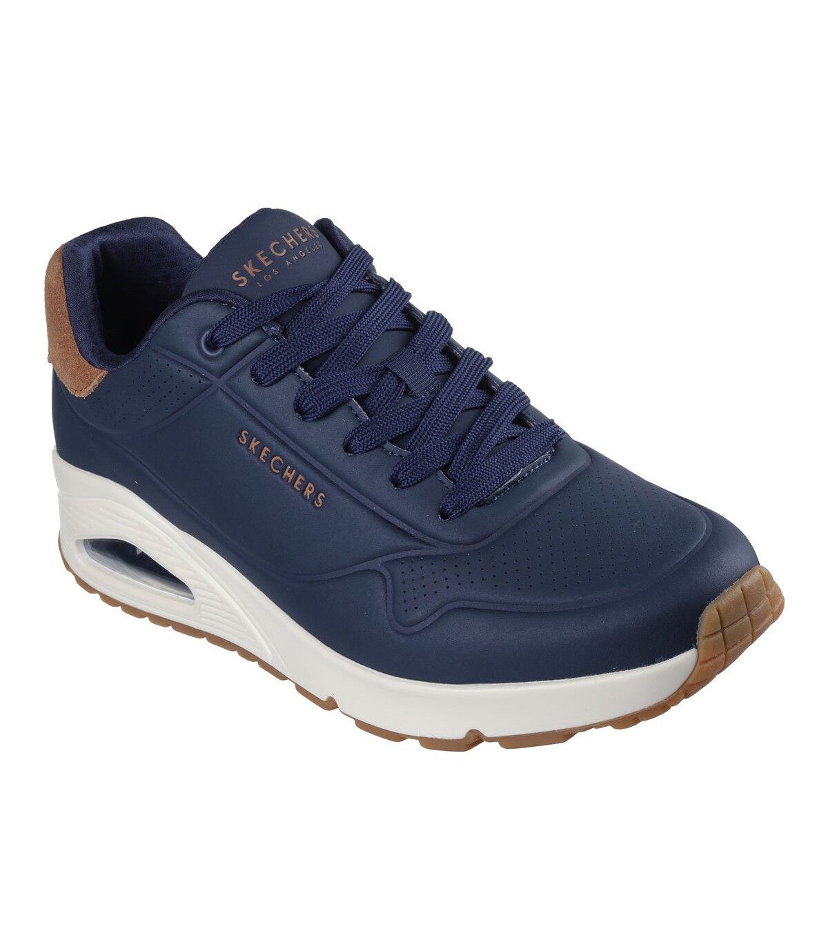 El estilo deportivo y refinado se une a la comodidad en las zapatillas Skechers Street™ Uno - Suited On Air. Estas zapatillas de estilo clásico con cordones cuentan con una parte superior de durabuck en bajorrelieve con ribete de ante en el talón, una plantilla Skechers Air-Cooled Memory Foam® y una media suela Skech-Air® con cámara de aire visible.