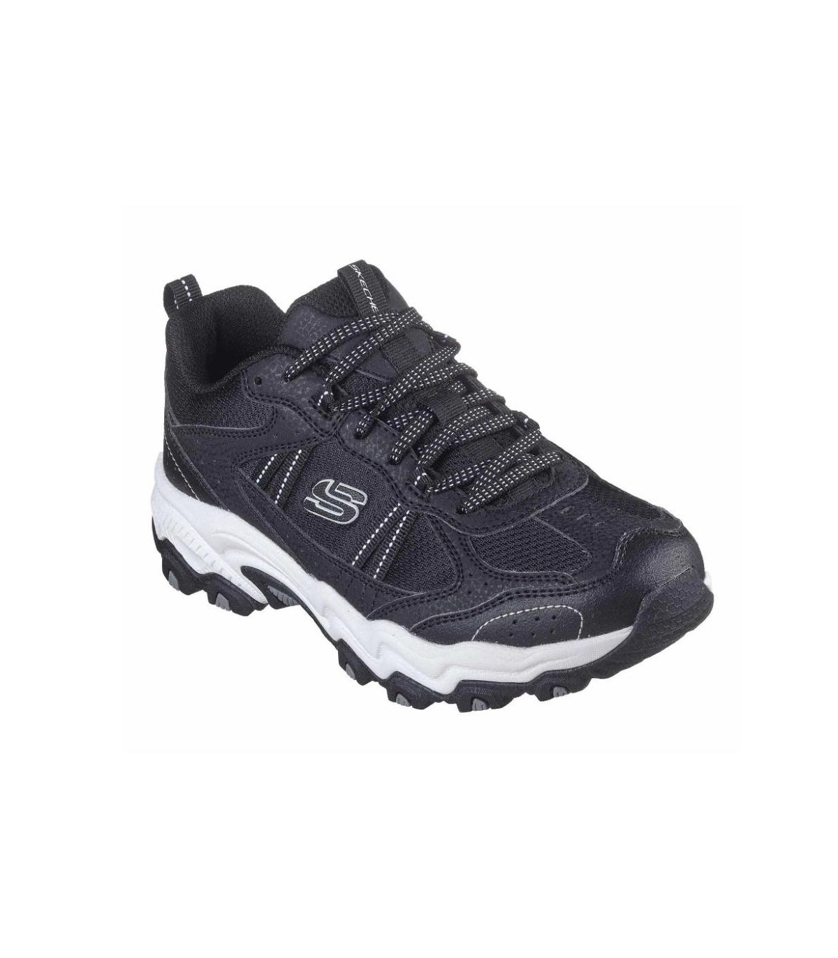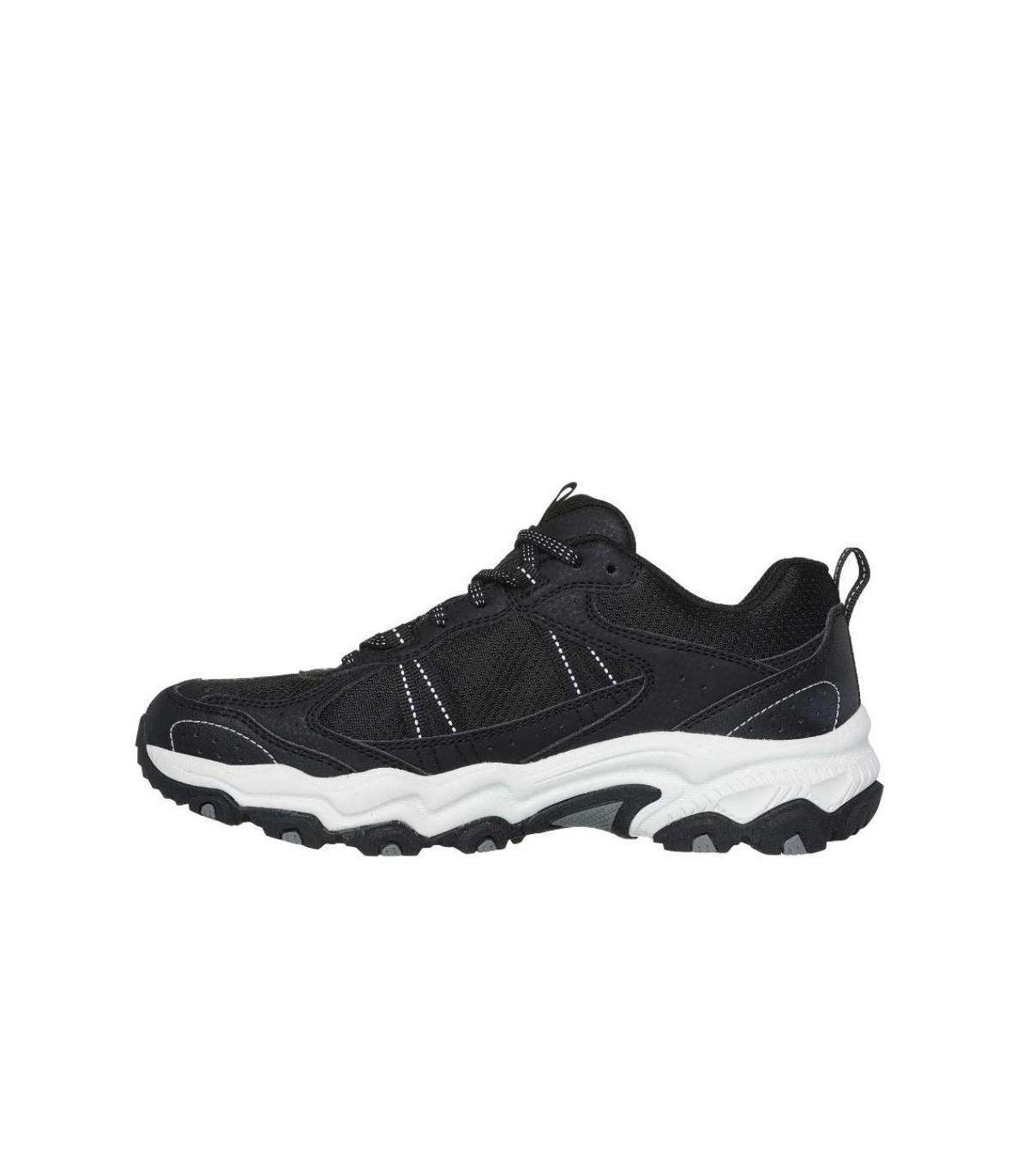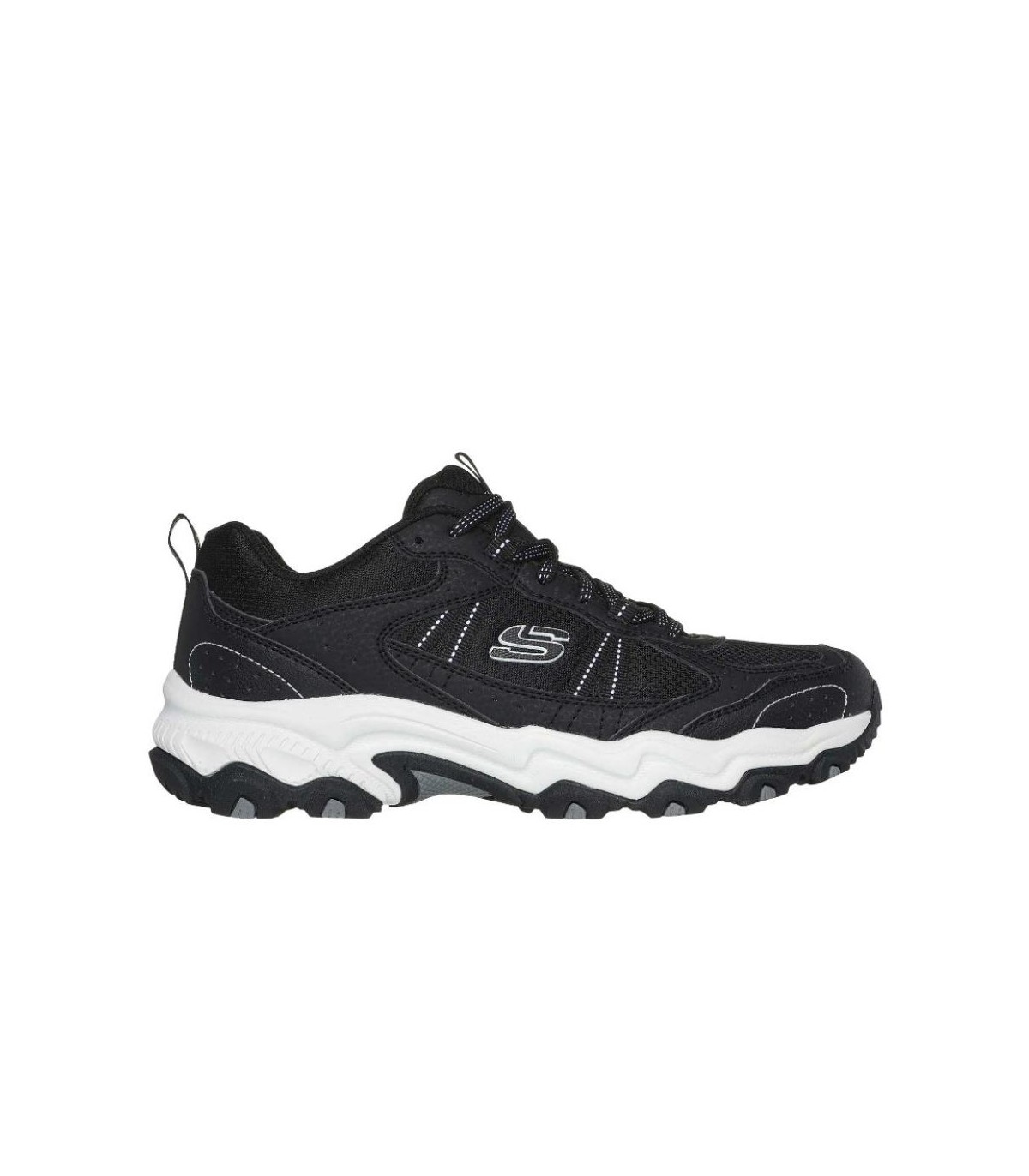 Recorre los senderos con comodidad deportiva con las zapatillas para correr Skechers . Este estilo con cordones presenta una parte superior de cuero sintético y malla con una plantilla acolchada Skechers Memory Foam.