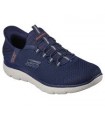 HANDS FREE SLIP-INS® Adéntrate en la comodidad de Skechers Hands Free Slip-ins®: Summits - High Range. Diseñado con nuestro sistema Heel Pillow™, este modelo vegano sin cordones cuenta con un exclusivo panel moldeado Skechers Slip-Ins® en el talón, una parte superior de malla con cordones elásticos fijos y una cómoda plantilla con amortiguación Skechers Air-Cooled Memory Foam™.