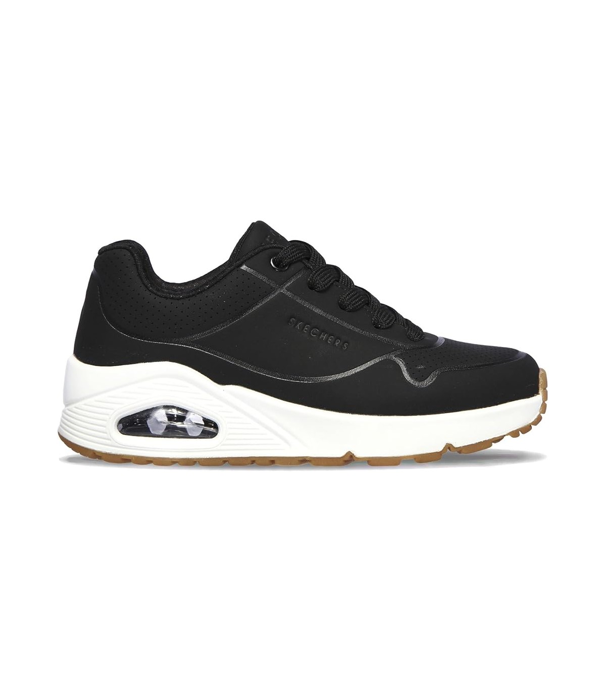 La comodidad de un modelo clásico con cámara de aire se actualiza con la Skechers Street™ Uno - Stand on Air. Moderno modelo con cordones con parte superior de piel sintética lisa y perforada, una plantilla SKECHERS Air-Cooled Memory Foam™ y media suela con cámara de aire visible Skech-Air.