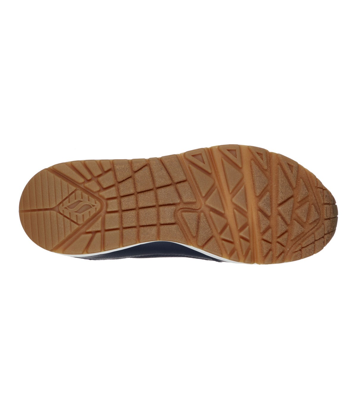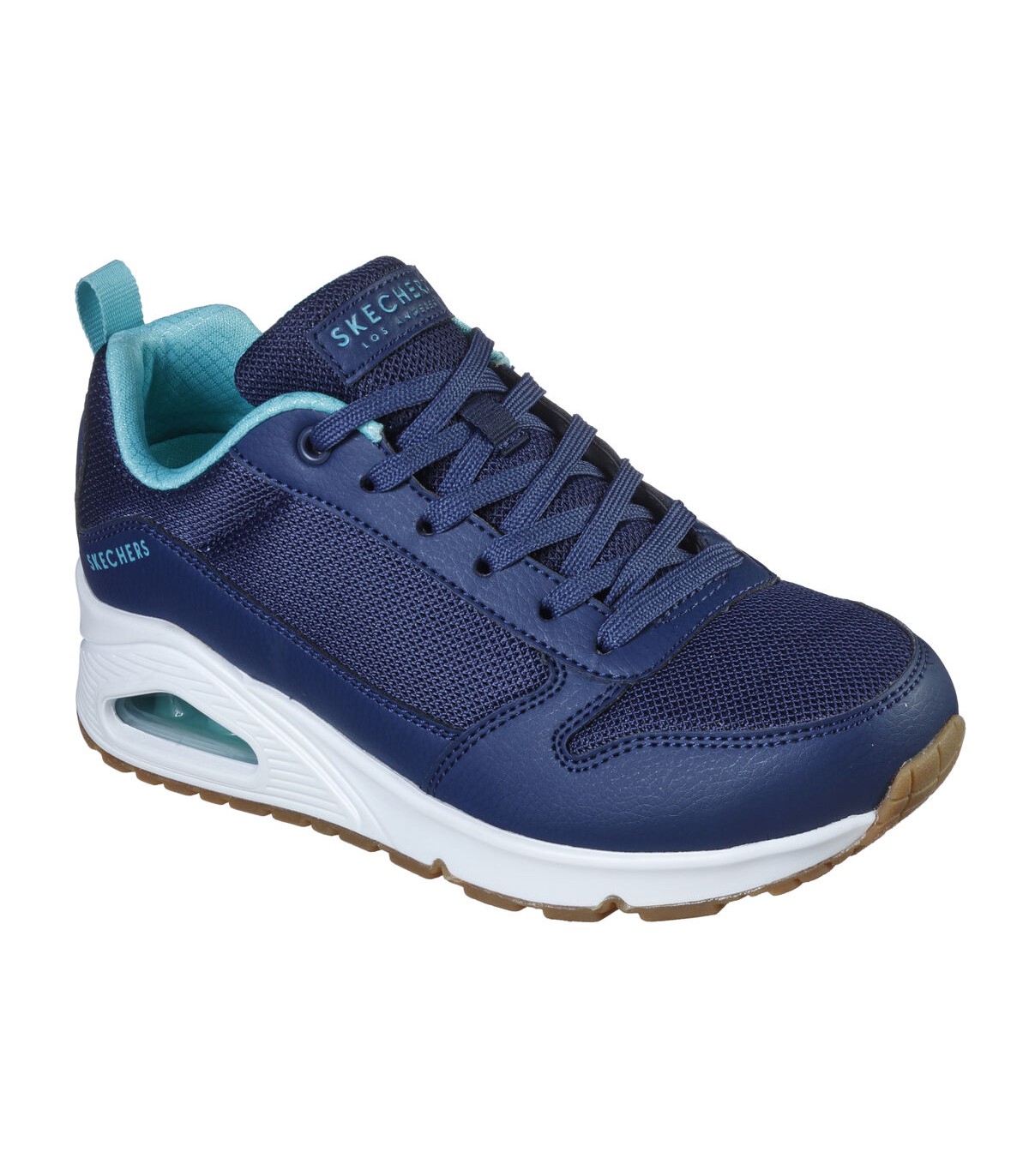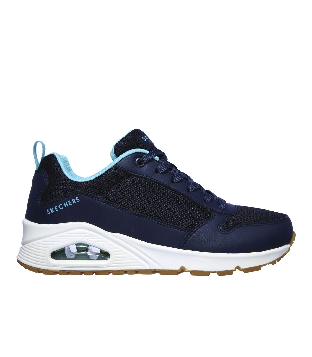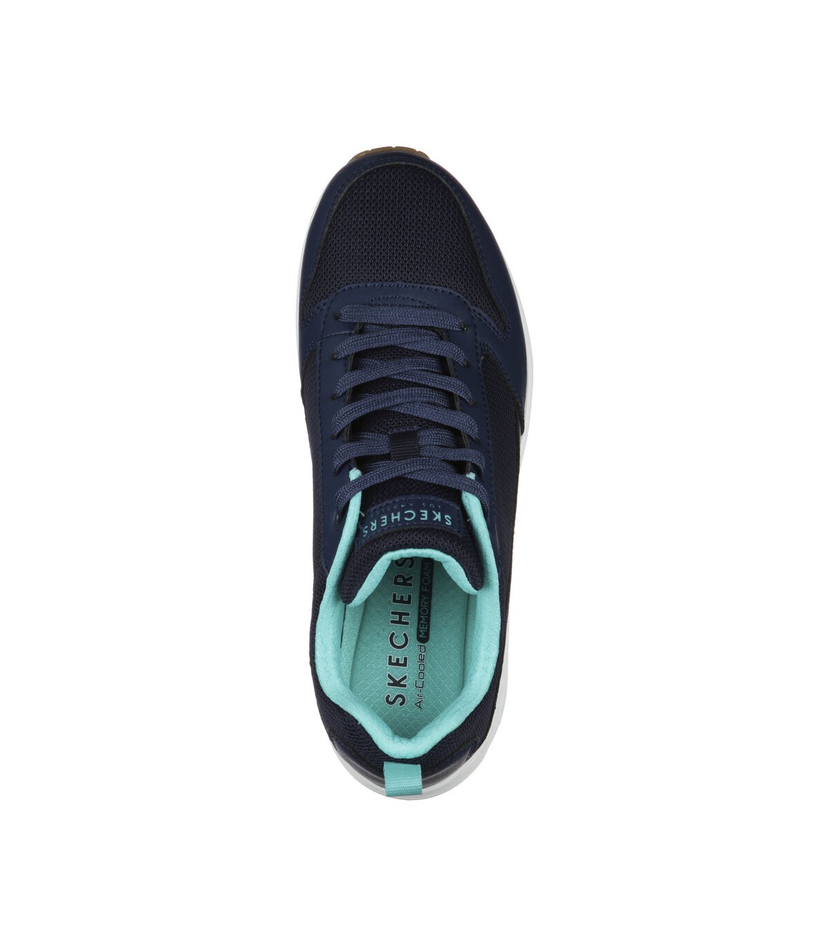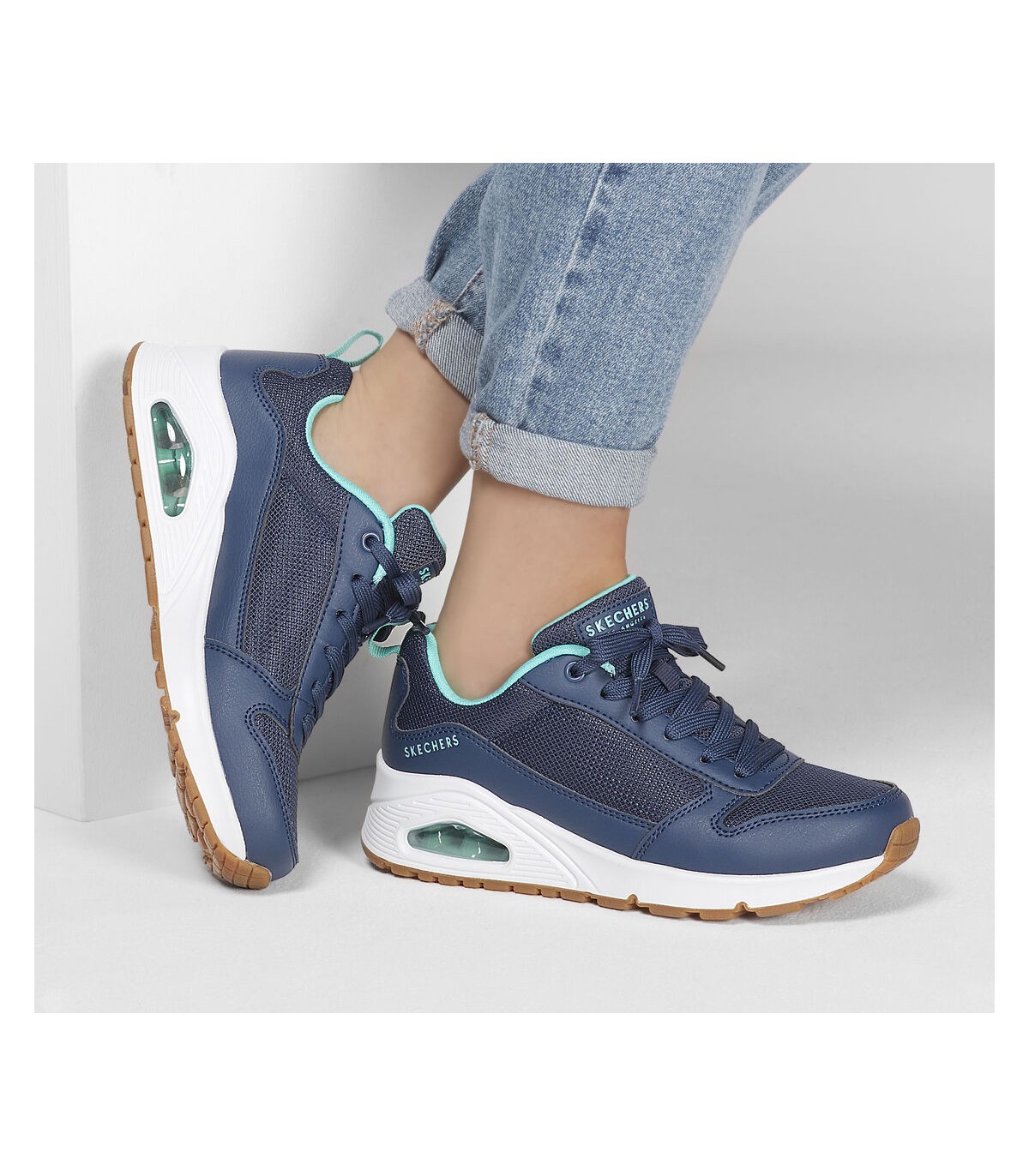 Un estilo liso y refinado que cuenta con la comodidad y el toque de color perfecto te aguarda en la SKECHERS Uno - Inside. Parte superior sintética y de malla lisa en una zapatilla deportiva de estilo running clásico con cordones, costuras y adornos superpuestos. Plantilla SKECHERS Air Cooled Memory Foam y panel de talón con cámara de aire visible.