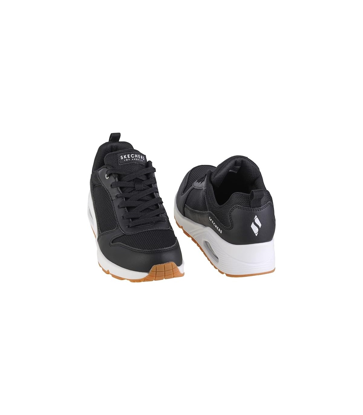 Un estilo liso y refinado que cuenta con la comodidad y el toque de color perfecto te aguarda en la SKECHERS Uno - Inside. Parte superior sintética y de malla lisa en una zapatilla deportiva de estilo running clásico con cordones, costuras y adornos superpuestos. Plantilla SKECHERS Air Cooled Memory Foam y panel de talón con cámara de aire visible.
